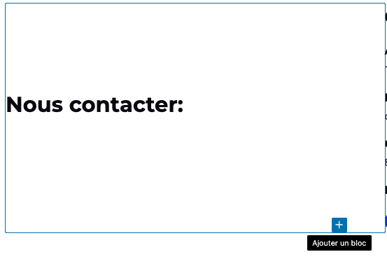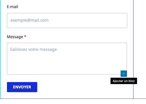 3) Une fois sur la page en mode édition, cliquez dans la zone ou vous voulez ajouter le formulaire et cliquez encore sur l’icon « + » en bas à droite de la zone: